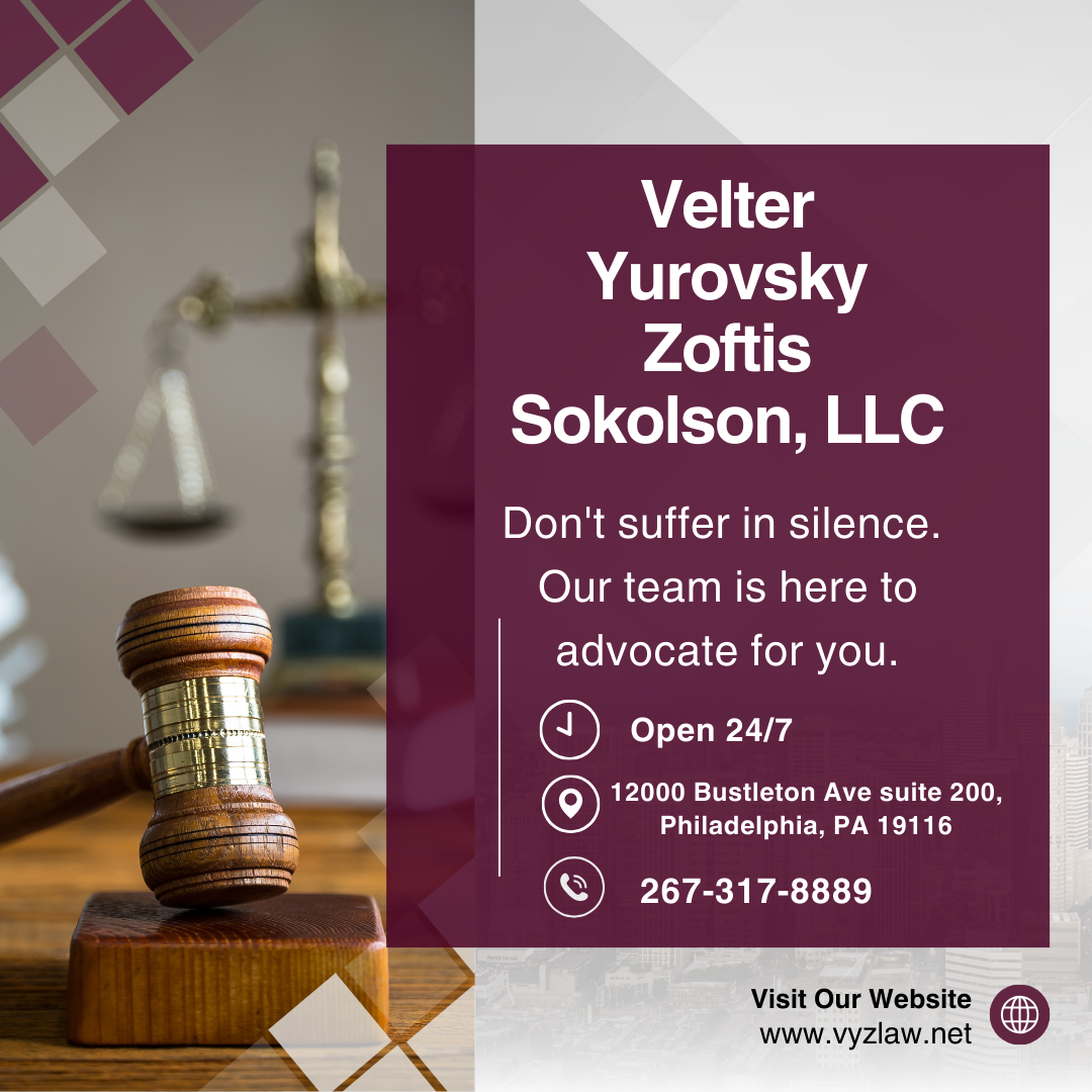 The attorneys at Velter Yurovsky Zoftis Sokolson, LLC are dedicated to fighting for the rights of personal injury victims. We understand that an accident can change your life in an instant, and we are here to provide guidance, support, and vigorous representation.